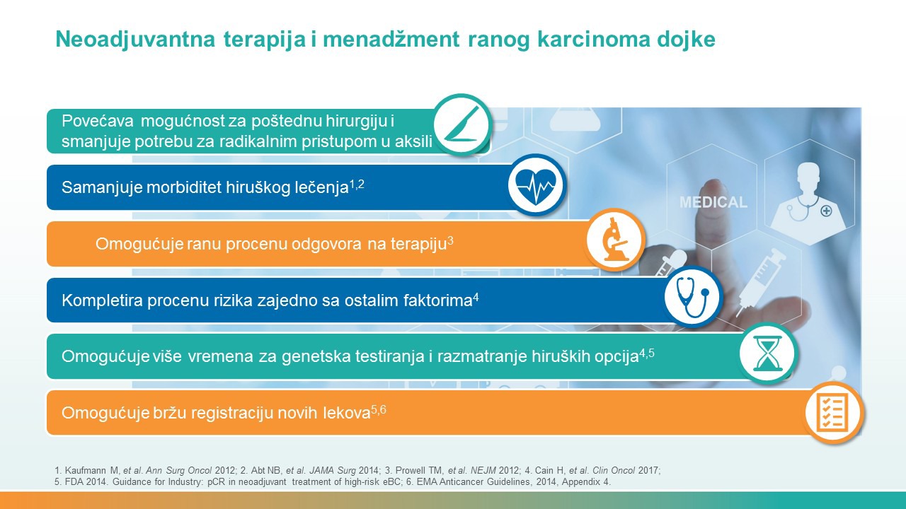 Karcinom dojke je najčešći uzrok smrti među ženama koje boluju od bilo kog karcinoma, širom sveta. Neoadjuvantna hemoterapija (NAT) je definisana kao hemoterapija koja se primenjuje pre lokoregionalnog lečenja, u koje spadaju operacija i / ili zračenje. Dobro je utvrđeno da NAT igra važnu ulogu u smanjenju tumora, eliminisanje mikrometastaza i ublažavanje simptoma povezanih sa tumorom kod pacijenata sa lokalno uznapredovalim karcinomom dojke. Trenutno, NAT se široko koristi u lečenju karcinoma dojke. NAT povećava stopu (BCS), takozvanih poštednih operacija. Nasuprot tome, postoji potencijalni rizik za progresiju tumora kod pacijenata sa tumorom koji je otporan na hemoterapiju. Ranija meta-analiza pokazala je da je NAT poboljšala apsolutne stope poštednih operacija dojke, iako je NAT povezivana i sa većim brojem lokoregionalnih recidiva. Ipak, NAT je povezana sa manje neželjenih efekata. Međutim, još uvek je nejasno da li bi se povećana stopa lokoregionalnog recidiva utiče i u kojoj meri na ukupno preživljavanje.